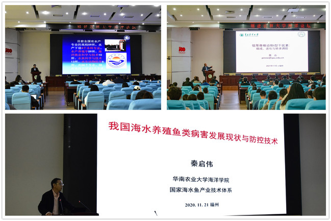 报告会上,来自兄弟高校的李家乐教授、聂品教授和秦启伟教授分别围绕“水产高等教育与乡村振兴”“低等脊椎动物I型干扰素的组成、进化与转录调控”和“我国海水养殖鱼类病害发生现状与免疫防控技术”主题作了报告,内容涉及方针政策、教育教学、科学研究等多个维度,对与会师生的学习、科研有着启发和指导意义。