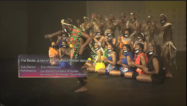 本场线上文艺演播分为“同音共律”“同舞共行”“同舟共济”三个篇章,中非艺术家们以歌、乐、舞等多种形式联袂出演,展现了中国和非洲各具特色、美轮美奂的舞台艺术,生动体现了中非文化的悠久历史与时代内涵。我校孔子学院组织德班理工大学艺术系的中文学员展示了一段具有南非特色的祖鲁族民族舞蹈,与其他精彩节目一起,谱写一场绝妙的云端华章,共同见证中非人民的深厚友谊。