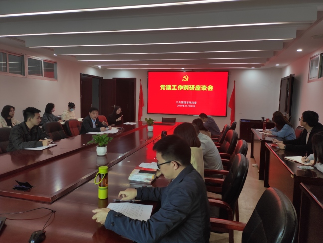 11月30日,公共管理学院党委书记曾起郁主持召开学院党建工作调研座谈会,学院党支部书记参加会议。