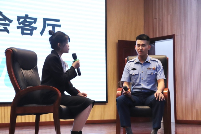 新闻会客厅比赛环节选手模拟采访退伍军人