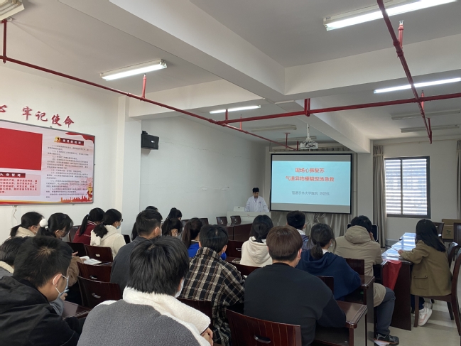 校医院将党史学习教育与为师生服务相结合,为提高师生在突发意外事件中的自救互救能力,树立“人人学急救,急救为人人”的公益理念,在举行第一期培训的基础上,近日开展了第二期应急救护培训,资源与环境学院近30名同学参加了培训。