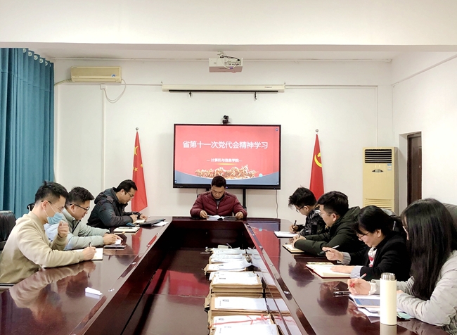 12月7日下午,计算机与信息学院组织政工干部在计信大楼302会议室集体学习省第十一次党代会精神暨省委宣讲团首场报告会学习交流会。计算机与信息学院党委副书记张明辉、学院辅导员参加会议。