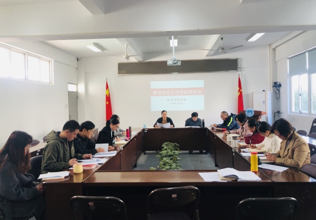 会议强调,高校意识形态工作关系高校办学的方向,关系高校改革发展的道路,关系高校立德树人工作的成败。会议要求,一要深入学习领会习近平总书记关于意识形态工作的重要论述,夯实意识形态工作的思想基础;二要认清当前意识形态工作面对的复杂形势,必须清醒把握形势,深刻认识存在问题,不能放松警惕,不能有丝毫懈怠,要积极应对新问题新挑战,进一步提升分析研判能力;三要持续抓好制度建设和落实,不断创新工作方式方法,强化责任担当,进一步提高制度执行力;四要进一步加强宣传阵地和管理队伍建设,协同政工干部、管理人员和专任教师合力,站稳守好课堂、新媒体等意识形态主阵地,巩固马克思主义在高校意识形态领域的指导地位;五要提升应急处置突发事件的能力,正确、高效、稳妥地处理意识形态突发问题,维护校园安全稳定。