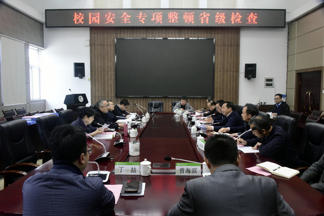 曾华平代表学校对检查组一行表示热烈欢迎,并就我校落实校园安全责任、安防体系建设、日常安全管理、治安综合管理、安全法制教育、疫情防控等十个方面安全专项工作向检查组作了汇报。