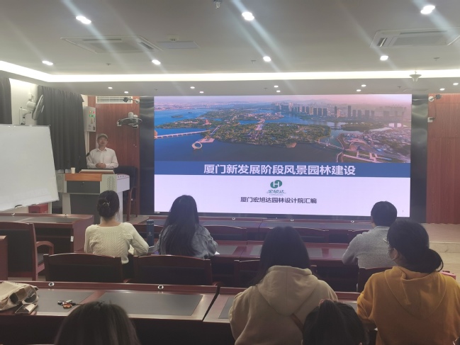 12月10日上午,学院邀请厦门宏旭达园林环境有限公司的规划设计院院长尹国斌在旗山校区综合楼12楼会议室召开“厦门新发展建设阶段风景园林建设”专题讲座。