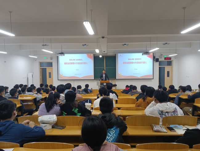 开班仪式后,曹滨斌主讲题为《做担当民族复兴大任的时代新人》的专题思政党课。他围绕深刻理解时代新人的本质特征和时代要求,结合现实案例阐述青年学生如何做到“立大志、明大德、成大才、担大任”,引导学员在日常学习工作中坚定理想信念,厚植爱国主义情怀,锤炼良好的品德修养和不懈的奋斗精神,培养强烈的担当意识,积极投身基层一线,树立斗争精神,为全面建设社会主义现代化国家贡献青春力量。