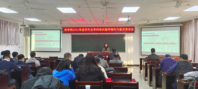 12月9日上午,林学院在田家炳C215组织学院全体研究生导师,开展2021年度研究生导师培训暨师德师风建设推进会。会议邀请了校研究生院副院长郑亚凤开展导师培训。会议由院长张飞萍主持。