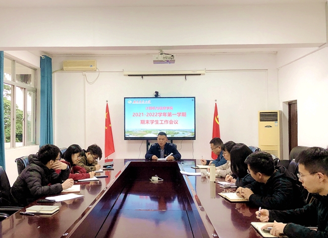 12月17日下午,计算机与信息学院在计信大楼302会议室召开2021-2022学年第一学期期末学生工作会议。学院全体政工干部参加会议。会议由学院党委副书记张明辉主持。
