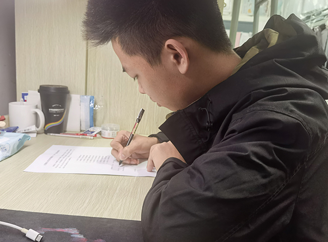 志愿者通过宿舍走访以及在舍长群发布活动等形式,组织各宿舍成员学习“十不”倡议内容并自愿签署承诺书。倡议内容包括且不限于安全出行、健康饮食、作息规律、遵纪守规、厉行节约等方面。宿舍成员根据其内容对各宿舍的用电安全,及节电、节水、节粮情况进行检查,安全意识也更加深入到每个成员心中。