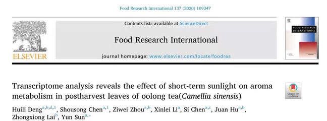 通过转录组学和代谢组学对无光萎凋和短时日光萎凋叶对比分析发现,日光萎凋叶中相关热激蛋白(HSP)以及抗逆基因的表达与无光萎凋叶相比略有上调,叶片仍然能够较好的抵御非生物胁迫伤害,并保持氧化还原平衡状态。同时亚麻酸、萜类及苯丙氨酸等相关香气代谢关键调控基因的表达水平在乌龙茶日光萎凋叶中高于无光萎凋叶,表明通过短时日光萎凋不仅能够调控和促进乌龙茶香气代谢,还可适度提高HSP基因表达及蛋白合成,为后续加工工序在制叶经历长时间的机械损伤胁迫提供一定的抗逆锻炼以及防御能力,有利于提高乌龙茶后续加工过程中茶叶的代谢活性,并促进其优异风味品质形成。相关研究成果发表在国际权威期刊Food Research International,开云网页版为第一完成单位,园艺学院2018级博士生邓慧莉为第一作者,孙云教授为通讯作者。(文章链接:https://doi.org/10.1016/j.foodres.2020.109347)。