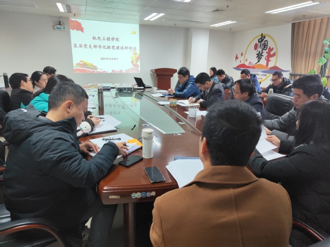 12月29日,机电工程学院党委召开2021年度基层党支部书记抓党建工作述职评议会,会议由学院党委书记池有忠主持,学院党委委员、党支部书记20余人参加了会议。