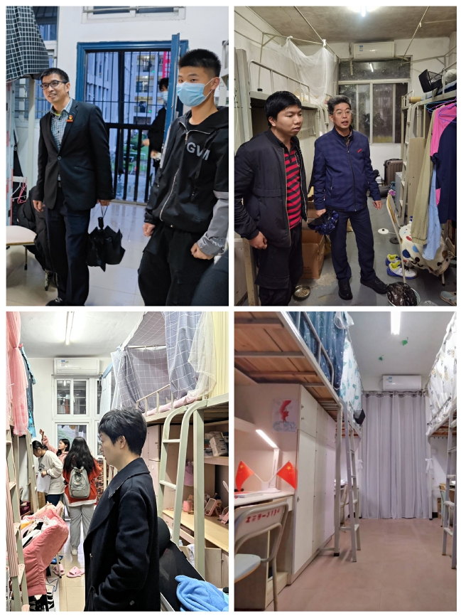 检查过程中,学院班子成员与学生进行深入交谈,详细了解学生在校生活情况,叮嘱学生持续做好常态化疫情防控措施,注意开窗通风,保持宿舍干净整洁,重视宿舍安全问题,禁止使用高功率电器,保持消防安全通道畅通,切实增强安全防范意识和应对处理突发事件的能力。