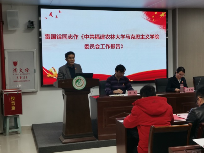 会议充分发扬党内民主,以无记名差额选举方式,选举产生了刘新玲、陈潜、林贤明、郑元景、雷国铨5位同志为新一届马克思主义学院党委委员;庄谋生、陈文、郑元景3位同志为新一届马克思主义学院纪委委员。