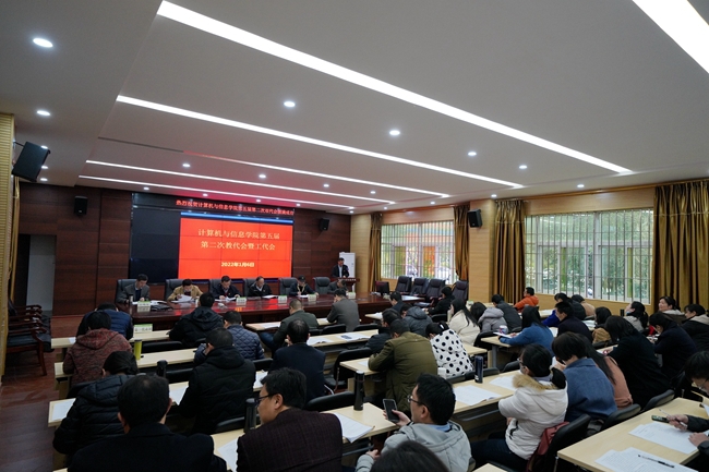 1月6日下午,计算机与信息学院第五届第二次教代会暨工代会在宝铃楼103会议室召开。学院党委书记钟一文、院长陈日清等学院班子成员、学院教职工代表和工会代表、列席代表等共64人出席会议。