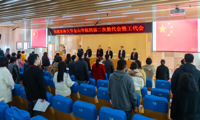 1月6日下午,金山学院第四届第二次教职工代表大会暨工会会员代表大会在学院综合楼十三层学术报告厅隆重开幕。学院党政领导班子成员、代表共计94人出席会议。