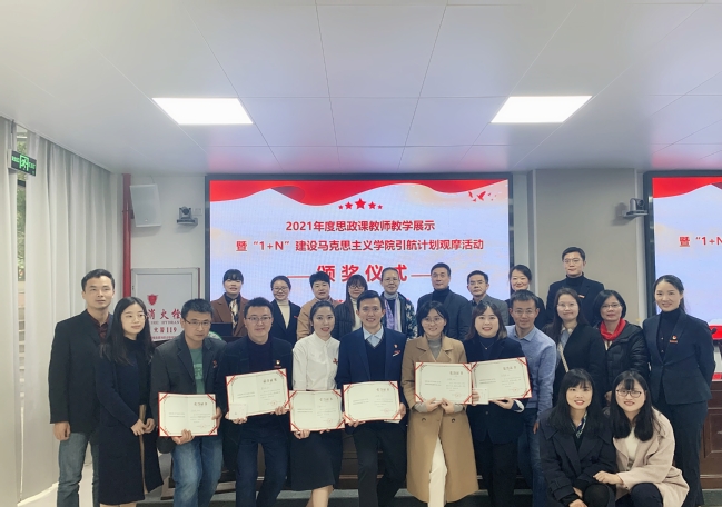 1月5日上午,马克思主义学院在学院104会议室举办党的十九届六中全会精神融入思政课教学展示暨“1+N”引航计划观摩活动。马克思主义学院全体教师及来自我校“1+N”结对共建的福建中医药大学、福建警察学院、福州工商学院、福建体育职业技术学院、福建卫生职业技术学院、我校金山学院、福建艺术职业学院等7所高校的20多名思政课教师现场观摩了此次活动。活动由副院长林贤明主持,学院党委书记雷国铨和院长刘新玲全程观摩指导,并为表现优秀的教师颁发荣誉证书。