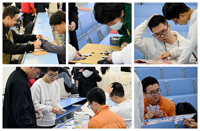 棋弈对阵,智谋比拼。活动现场,博弈协会准备了围棋、象棋、五子棋、《强国梦》和《三国杀》等文创棋牌桌游产品,让同学们在竞技博弈中益智益脑,在团队协作中收获别样的友谊。在棋类活动区,棋盘变幻无数、棋子攻守兼备,大家时而低头沉思,时而兴奋落子,传统文化在博弈者的指尖慢慢绽放。在桌游活动区,大家你追我赶、斗智斗勇,仔细计算着每一张出牌顺序,既纵观大局,又注重细节,,用智慧上演了一场场精彩绝伦的棋牌竞技比赛。