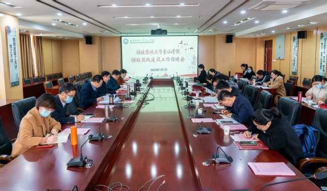 1月7日下午,金山学院课程思政建设工作推进会在A1106会议室召开。学院领导班子成员,党办、院办、宣传部、学工部、团委、教工部(人事处)、教务处、研发处等部门负责人,各系(院)党政主要负责人共三十人参加会议。会议由副院长邱容机主持。