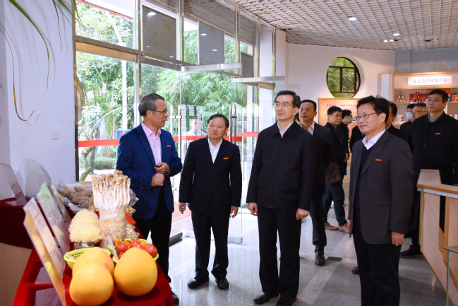 罗东川一行先后考察调研了我校马克思主义学院、中共党史党建研究院、乡村振兴研究院和菌草工程技术研究中心,亲切看望慰问菌草技术专家林占熺教授。罗东川对学校党建思政、学科建设和改革发展工作取得成效给予充分肯定。他强调,要进一步深化习近平总书记关于“三农”工作的重要论述理论研究,紧紧围绕实施乡村振兴战略需求,充分发挥学校在农业领域的智力资源和科技优势,加强技术创新和成果转化,培养知农爱农的新型人才,为全面推进乡村振兴、加快农业农村现代化提供科技和人才支撑。加强菌草关键技术创新和推广应用,持续讲好“菌草”故事,不断提升生态效益、经济效益和社会效益,使菌草技术成为助力巩固脱贫攻坚成果和促进共同富裕的“致富草”“幸福草”,更好服务“一带一路”建设,推动构建人类命运共同体。