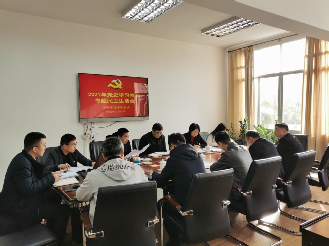 1月15日上午,经济管理学院党委于经管楼311室召开2021年度党史学习教育专题民主生活会。校党委常委、副校长唐振鹏及校民主生活会第三指导组一行莅会指导,会议由院党委书记张开晃主持,院党委班子全员参会。