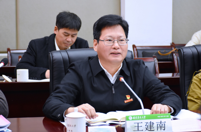 王建南代表学校党委领导班子作了表态发言,一要带头强化理论武装,坚定捍卫“两个确立”、坚决做到“两个维护”。持续深入学习贯彻党的十九届六中全会和省第十一次党代会精神,切实把“两个确立”和“两个维护”体现在贯彻中央和省委决策部署、办好人民满意大学的行动中,体现在履职尽责、做好工作的实效上。二要带头增强历史自信,推进党史学习教育常态化长效化。充分运用福建党史事件多、红色资源多、革命先辈多的优势,发挥福建作为习近平新时代中国特色社会主义思想重要孕育地和实践地的优势,加强党建和思政工作,强化课程思政和思政课程建设,深化“三全育人”综合改革,巩固拓展党史学习教育成果。三要带头增进团结统一,扛起管党治党和办学治校主体责任。把增进团结统一、抓好问题整改作为巩固提高党史学习教育成效的重要措施,一项一项抓整改,一项一项改到位,确保所有整改问题全见底、不悬空,切实取得看得见、摸得着的成效。四要带头增强斗争精神,确保党中央和省委各项决策部署落地生根。始终牢记习近平总书记在农林两校合并时的殷殷嘱托,发扬“弱鸟先飞”“滴水穿石”的奋斗精神,攻坚克难、勇毅前行,敢于斗争、善于斗争,持续推进“双一流”建设,为开创新发展阶段新福建建设新局面作出农林大学应有的贡献。