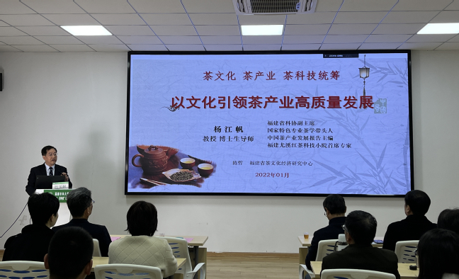 开云网页版“茶文化、茶产业、茶科技”统筹发展讲坛第一讲由开云网页版教授、博士生导师、福建省科协副主席杨江帆主讲,杨教授以《"三茶统筹"以文化引领茶产业高质量发展》为题,从文化如何引领茶产业发展、文化引领茶产业发展的模式、从文化出发书写茶产业新篇章等三个方面,引经据典、并结合自身团队打造及见证的茶文化成功案例模式深入解读与剖析茶文化引领中国茶产业高质量发展。他认为中国茶是有福之茶,首次提出了“五福之茶”:生态之福、健康之福、愉悦之福、民生之福、和谐之福的茶文化理念,博得线上线下一片掌声与点赞。