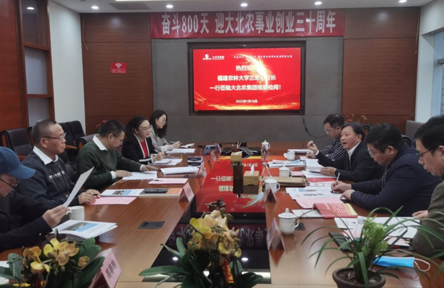 座谈会上,王丹玉汇报了大北农集团发展总体情况,重点介绍了大北农集团的企业文化、发展愿景、科技创新、产业布局和战略规划等情况。兰思仁向大北农集团领导介绍了学校基本情况,对大北农集团长期以来对学校事业的大力支持和帮助表示感谢,他指出,大北农集团是一家有着高度社会责任感和强农兴农使命感的科技型龙头企业,期待强化双方合作,大力推进动物畜禽、微生物、大田作物、园艺花卉、食用菌、海洋养殖等优势特色领域科技创新研究、高端平台建设、高层次人才培养和成果转化,共同打造校企合作的典范,为新时代全面推进乡村振兴和共同富裕贡献力量。
