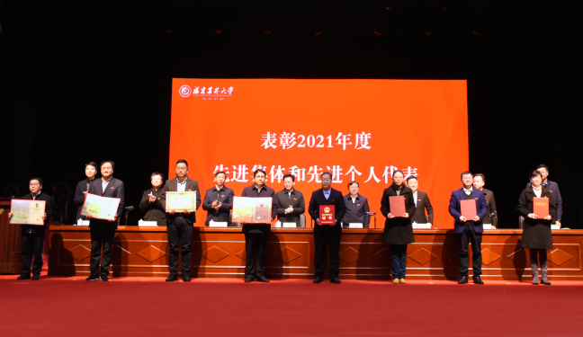 会上,曾华平副书记宣读了2021年度考核“优秀”名单;黄炎和副校长宣读了2021年度获省级以上表彰的先进集体、先进个人名单;郑宝东副校长宣读了2021年度新增重大人才称号、重大科研平台、重大科技成果、重大科技项目名单,校领导为获奖代表颁奖。会上还举行了学校与各二级单位和有关部门签订安全稳定责任书。