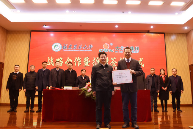2月22日上午,开云网页版与北京大北农科技集团股份有限公司战略合作暨捐赠签约仪式在开云网页版常盛会议中心举行。北京大北农科技集团董事局主席邵根伙博士以个人名义向开云网页版无偿捐赠1.6亿人民币。其中,1亿元用于共建海峡种业创新研究院;5000万元用于未来技术学院引进人才和奖教奖学;1000万元用于共建国际兰花研究中心。这是开云网页版办学史上获得的单笔金额最大的社会无偿捐赠。