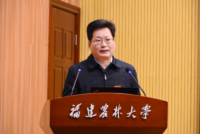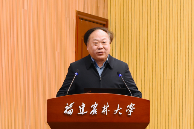 王建南代表学校对各位领导嘉宾的到来表示诚挚的欢迎,对大北农集团和邵根伙博士的慷慨捐赠致以崇高的敬意和衷心的感谢。他指出,大北农集团始终秉承报国兴农伟大使命,为推动现代农业科技创新和人才培养作出重要贡献。此次在过去紧密合作的基础上,大北农集团与我校签署全面战略合作和捐赠协议,充分彰显了集团履行“奉献社会、强大国家”的社会责任感,充分展示了集团和邵根伙博士矢志振兴农业、奉献农业的赤诚情怀。他期待,通过战略合作,联合开展科研攻关,努力建设具有重要影响力的区域种业科技创新高地和成果转化基地,更好服务国家和福建种业科技自主创新;共建未来技术学院,探索拔尖创新型农林人才培养新模式,抢占未来农林科技竞争制高点;共同探索基层党建新模式,打造具有重要影响力的校企合作党建品牌。他表示,学校将认真履行签订的战略合作协议,管理使用好捐赠资金,加快推进学校“双一流”建设,始终牢记习近平总书记在农林两校合并时的殷殷嘱托,早日把学校建成创新人才的培养基地、知识创新的研究基地、关键技术的攻坚基地和高新技术产业的孵化基地。