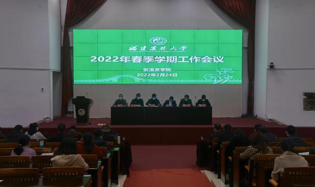 2月24日下午,安溪茶学院召开2022年春季学期工作会议。院长戴永务传达了学校新学期工作会议精神,并结合学院工作,全面系统部署了学院2022年中心工作和重点工作。学院党委书记连文作了总结并强调,要坚决贯彻落实校党委决策部署,结合学院工作实际,深入实施党建与思政工作守正创新“八大工程”,坚持党的全面领导,发挥学院党委政治核心作用,坚持落实立德树人根本任务,持续深化“立德树人特色”专项行动,坚持党建提能,增强党支部政治功能,健全党员干部培养体系,全面开展理论学习、红色教育、实践锻炼,全面推进从严治党,健全廉政监督体系,强化群团工作,选树培育典型,发挥榜样引领作用。要扎实推进学院事业发展“十四五”规划实施,聚焦提高效率、提升效能、提增效益,对照主要目标任务,细化项目清单和时间节点,扎实推动学院建设具有“茶产业”特色的高水平国家级现代产业学院。要全面盘活学院办学资源服务学校发展战略,全力推进做好校区学生扩容各项工作,保障秋季新生顺利进驻。要慎终如始做好常态化疫情防控,牢牢守住校园疫情防控底线。要精心谋划做好“十周年”院庆工作,内聚人心、外树形象,不断提升学院综合实力、内涵竞争力和社会影响力,以崭新的姿态、优异的成绩迎接党的二十大胜利召开。