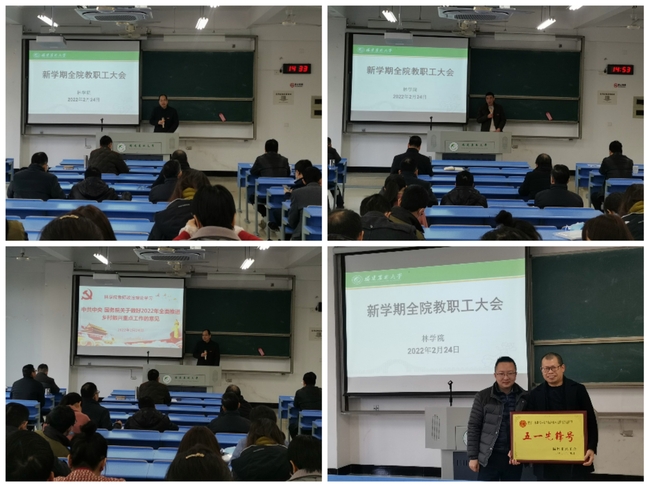 2月24日下午,林学院在诚A202召开新学期全院教职工大会,部署学院新学期重要工作,院党委书记蓝天水、院长张飞萍、学院党政领导班子成员及全体教职工参加会议。