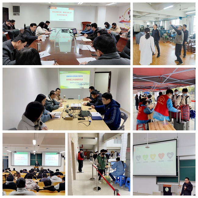 提前谋划,做好部署。2月18日上午,学院召开新学期学生工作会议,传达学校春季开学疫情防控工作部署会精神,谋划部署学生返校报到和开学初各项工作,要求全体政工干部认真落实学校工作部署,强化责任意识,提早谋划,落实落细返校开学各项工作。2月22日上午,学院党委召开会议传达校2022年春季学期工作会议精神,对学院新一年工作进行安排部署。2月23日下午,学院再次召开政工干部专题会议传达学校疫情防控工作专题会议精神和新学期学生疫情防控工作会议精神,要求全体政工干部提高政治站位,坚决贯彻落实校党委决策部署,加强疫情防控各类排查和宣传教育,严格落实请销假、晚查寝等制度,认真抓好常态化疫情防控各项工作。