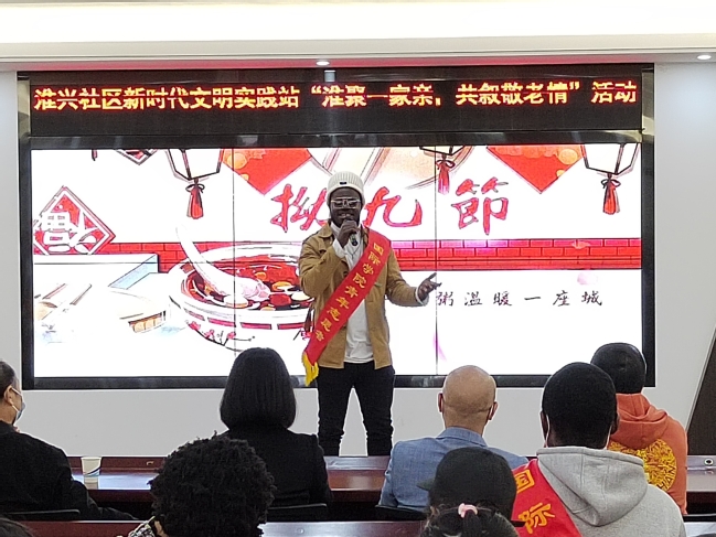 来自尼日利亚的留学生迈克表示,很高兴作为志愿者参加此次活动。年轻人送“拗九粥”给老人,看似简单的行为是对敬老孝亲的文化传承。中国是一个尊老爱老的国家,这一美德仍在代代相传,希望将来能有更多机会参加这样的活动。