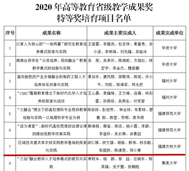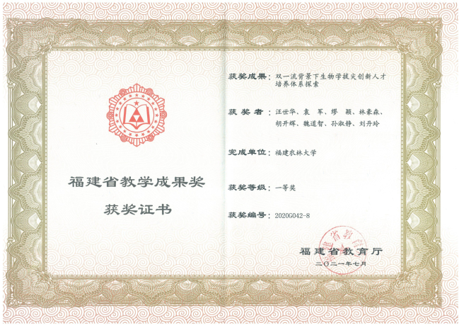 成果获奖等级:福建省教学成果奖特等奖培育