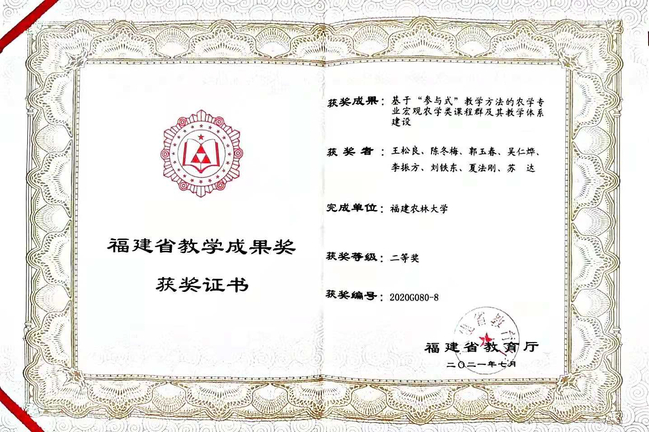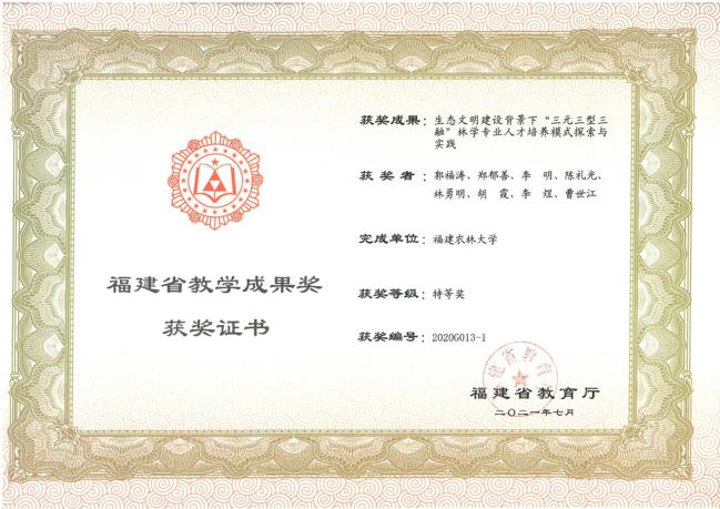 成果主要完成人:郭福涛、郑郁善、李明、陈礼光、林勇明、胡霞、李煜、曹世江