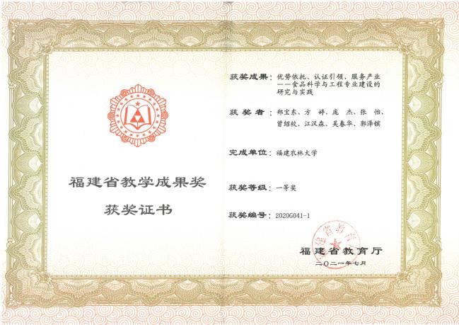 成果获奖等级:福建省教学成果奖一等奖