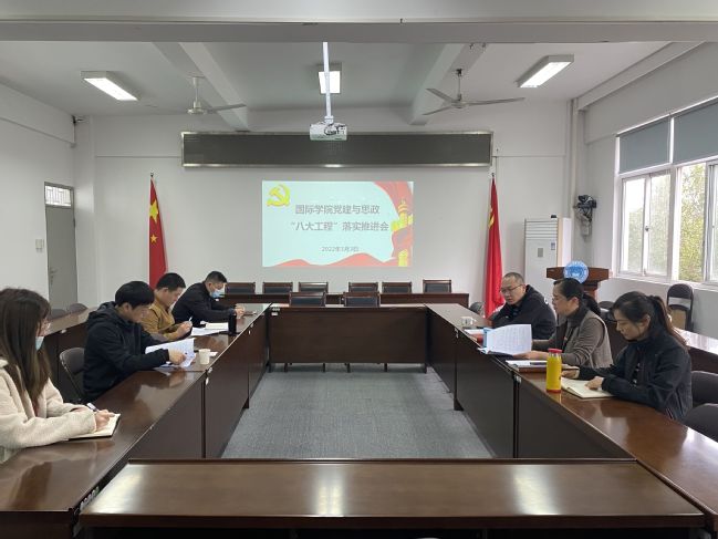 3月3日上午,国际学院在明北附303召开党建与思政“八大工程”落实推进会。会议由学院党委副书记刘敏主持,学院党委书记张华英、党委秘书梁慧和全体政工干部参加会议。