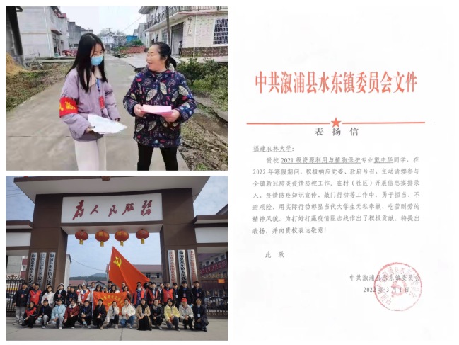 近日,中共湖南省怀化市淑浦县水东镇委员会向植物保护学院发来表扬信,高度评价青年学子戴中华在寒假期间参加疫情防控工作的出色表现。