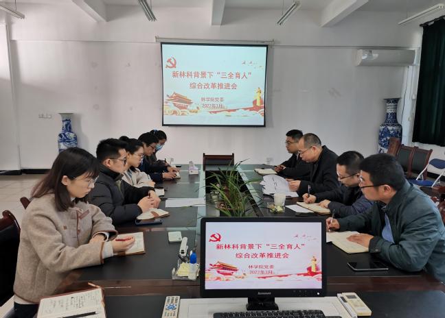 3月8日下午,林学院在诚A206召开新林科背景下“三全育人”综合改革推进会,会议由学院党委书记蓝天水主持,学院党政领导班子成员和全体辅导员参加会议。