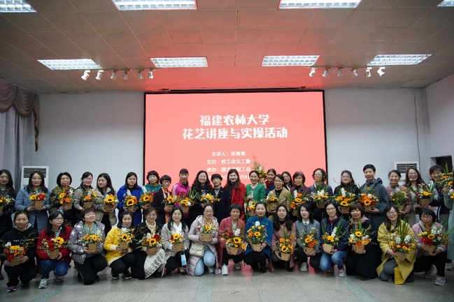 活动包括花艺讲座和实操两部分。来自园艺学院的陈青青老师向大家讲解了插花的基本知识和技巧,激发了大家对插花艺术的浓厚兴趣。女教职工们在老师的指导下动手实践,经过选择、摆花、剪枝、修叶、扎束等步骤后,一束束靓丽的花艺作品伴着惊喜和欢乐被创作出来,现场洋溢着温馨美好的节日气氛。大家捧着各自的花艺作品,散发着自信与快乐,欢聚一堂合影留念。