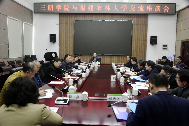 3月9日下午,三明学院校长王乾廷、副校长张君诚率相关职能部门负责人来校调研交流。校长兰思仁、副校长黄炎和出席座谈会。