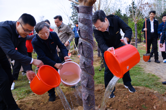 校领导与师生共同植树