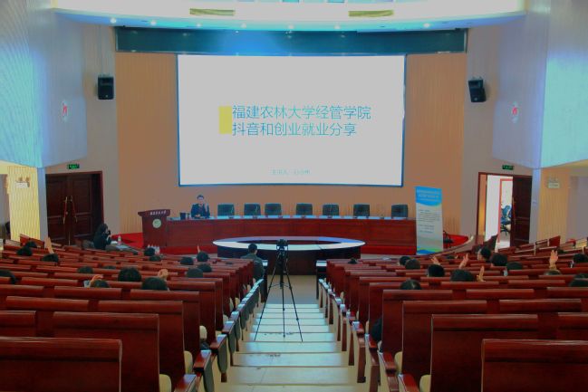 孙小伟着重围绕抖音的流量变现和推荐算法流程、如何实现高品质高流量抖音创作、抖音直播下三农机会以及创业就业建议等四大方面进行讲述。现场,孙小伟热情地与同学们分享自身抖音运营的种种“干货”,在如何提高抖音视频的互动率、点赞率、评论率、关注率、完播率等方式上提出了独到的见解。同时孙小伟运用大量成功案例阐明制作什么样的内容才能受大众喜欢,他认为成功的抖音帐号必须具备三个特征,即内容必须跟着国家最新方针政策走,走在时代的风口;产品形象要和人物形象相符,农产品领域“接地气”更容易拉近与用户的距离;每个账号一定要有属于自己的专一且独特的记忆点,才能在同质化的产品中脱颖而出。”最后,他就考公考研、创业就业分享了自身想法和经验,并为同学答疑解惑。