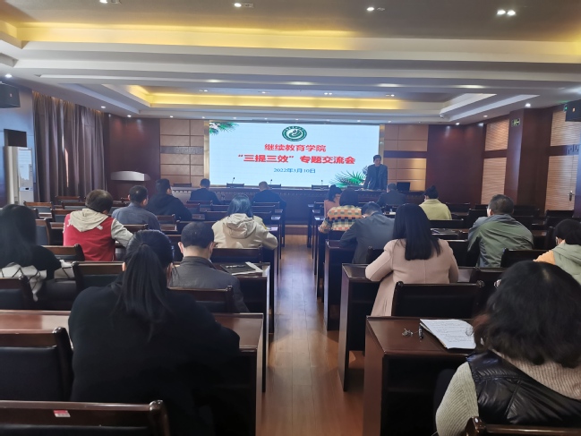 为更好地落实省委省政府“三提三效”部署要求,3月10日下午,继续教育学院在三楼学术报告厅召开“三提三效”专题交流会,全院教职工参加会议。院长苏时鹏主持会议。