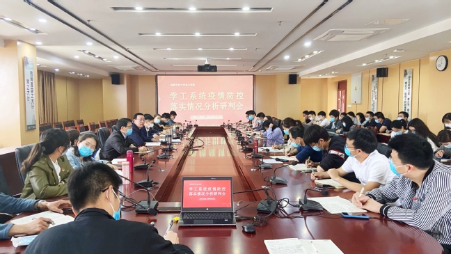 3月16日上午,金山学院在学院第二会议室召开学生系统疫情防控落实情况分析研判会。院党委常务副书记孙思惟,院长林克显,党委副书记李晓辉,全体政工参会,会议由李晓辉主持。