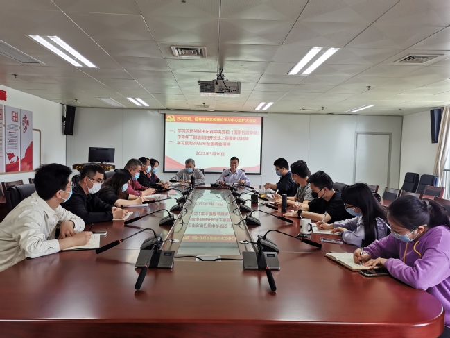 3月16日上午,艺术学院园林学院党委书记陈为德在旗山综合楼1102-4主持召开学院党委理论学习中心组扩大会议,学习习近平总书记在中央党校(国家行政学院)中青年干部培训班开班式上的重要讲话精神以及2022年全国两会精神。学院领导班子成员、两委委员、党支部书记、政工干部出席会议。