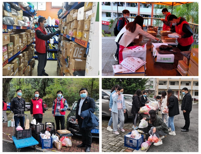 物资运送志愿服务。为解决东苑学生取快递难、购买生活物资不便的问题,学院迅速成立了物资运送志愿服务队,为东苑学生提供暖心的快递包裹、快餐和水果等物资代取运送服务,工作流程涵盖信息收集—代取快递包裹、快餐和水果—打包装箱—乘坐接驳车运送—分发至学生手中,形成流水线式一条龙服务,做到人员安排妥当、全程防护,工作衔接有序、有条不紊。此举打通了东苑学生物资运送的最后一公里,受到了东苑学生的广泛好评。