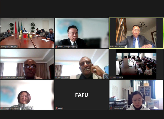 3月24日下午,我校与埃塞俄比亚驻华大使馆及沃莱塔·所多大学(Wolaita Sodo University)召开视频会议,推动中埃高等教育合作。埃塞俄比亚驻华大使特肖梅•托加(Teshome Toga)率埃驻华使馆相关官员、埃塞俄比亚沃莱塔·所多大学校领导等10人,我校副校长郑宝东,对外合作与交流处、国家菌草工程技术研究中心相关人员参加视频会议。