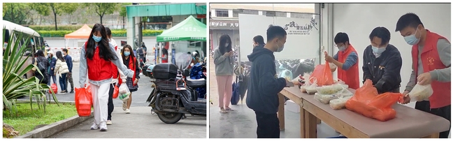 东苑餐食领取配发志愿服务岗。为配合学校校内餐食运输至东苑相关工作顺利开展,学院团委学生会组建“东苑取餐配发”志愿服务队,维持餐食领取秩序,协助各班级负责人领取相应餐食,有效提高餐食发放效率,做到不扎堆、不聚集。